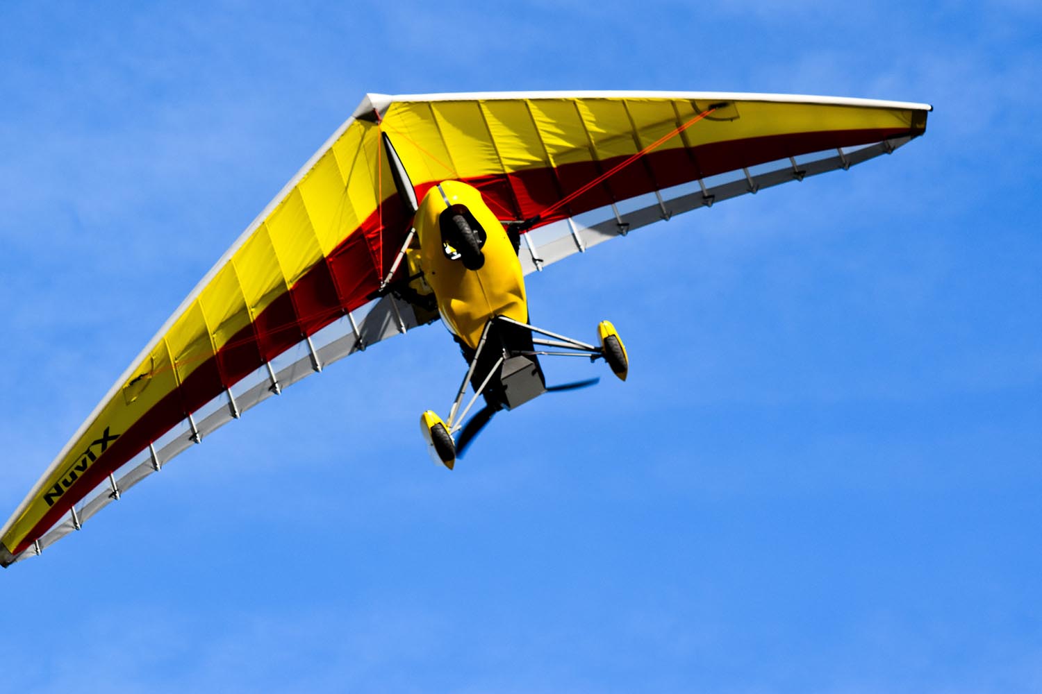 Again, on the front of the stage, the Skypper produced has more than 500 copies since 2011 gets an improvement in evo version. While retaining its sporting and recreational character, it is intended for "pleasure flight", training center, competition, travel, etc. Developed specifically to provide a modern wing for the early generations of Skypper and earlier trikes, the NuviX inherits some of the technologies of its predecessor, the BioniX. This 15m² variable configuration wing is equipped with the Corset© system and a structure similar to that of the BioniX. The most accessible of the Corset© wings is optimized for extreme maneuverability at low speeds.