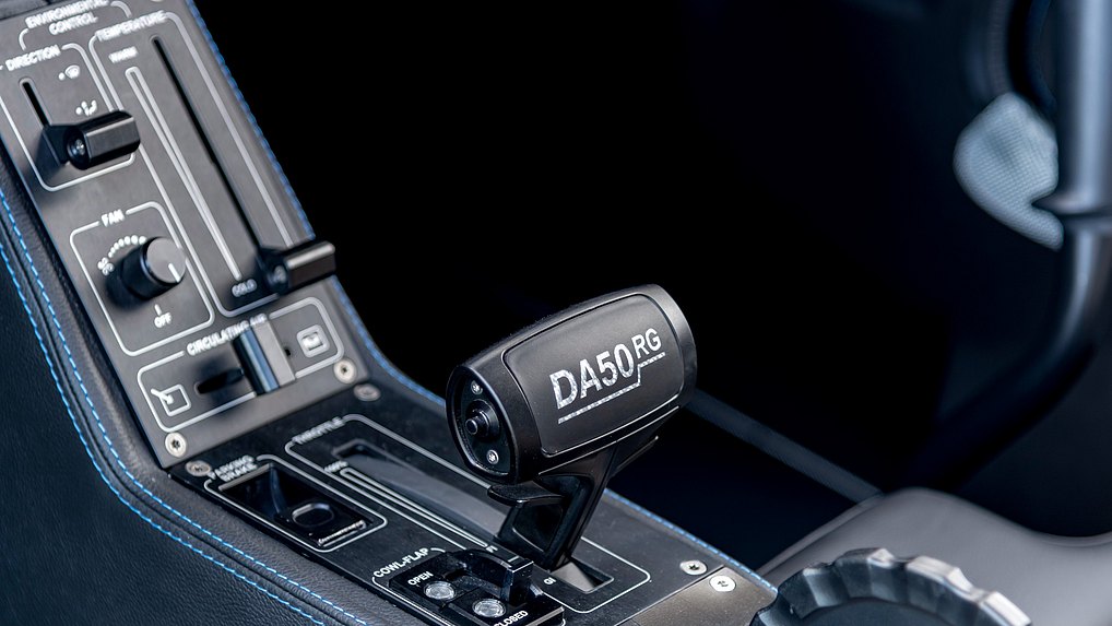 Blue DA50 RG with orange and grey highlights flying through clouds. DA50 RG Soar Above. You want to stand out from the crowd? You want everyone on board to fly safe? You need comfortable leg, shoulder and head room? You care about the environment? And you too think that flying with a retractable gear single is a touch more sophisticated? Then the magnificent DA50 RG is your number one choice!
